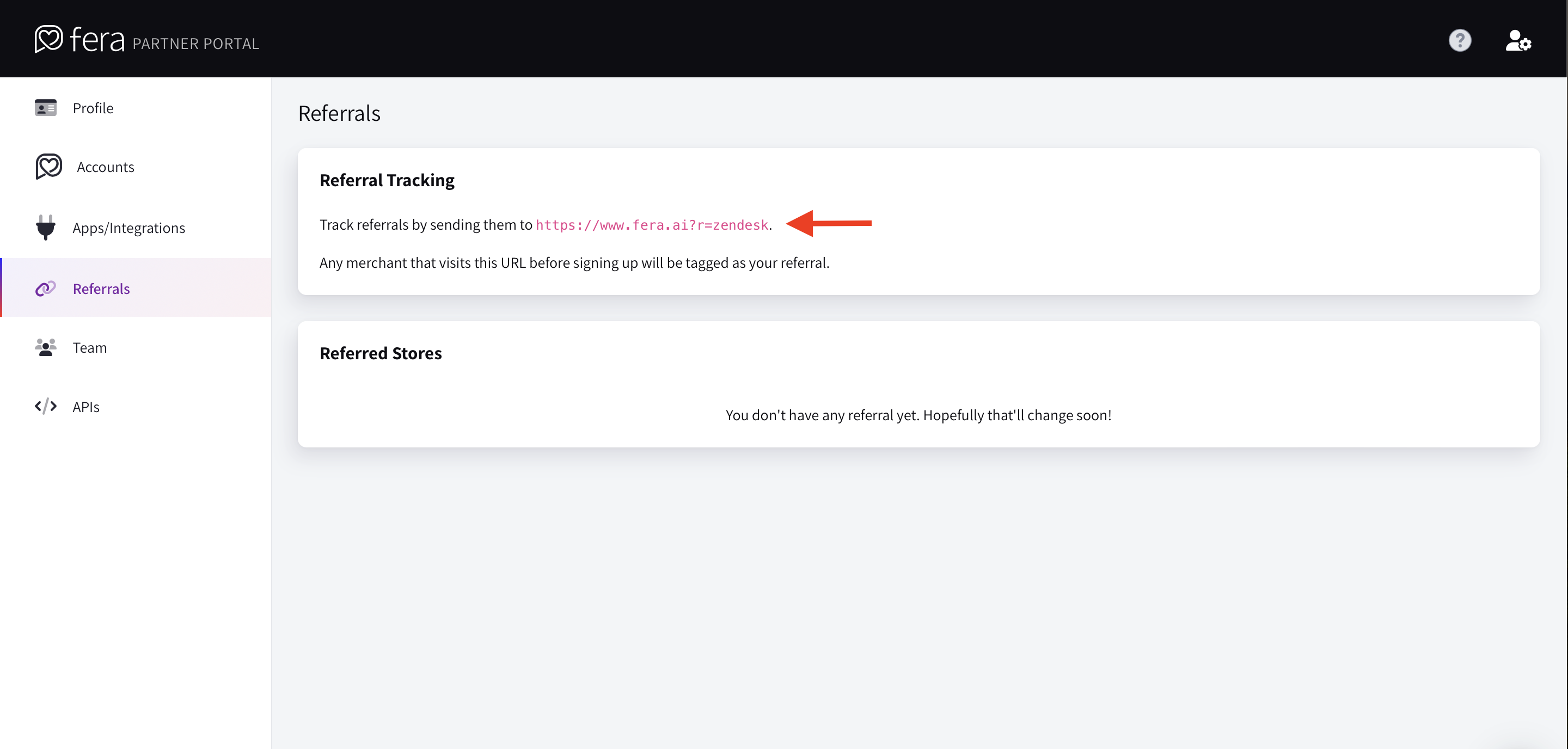 In Referrals page, it shows your referral link that you can use to refer for Fera signups.&#x20;